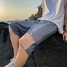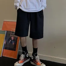 2020 קיץ נוער חדש פופולרי תפירה רופפת גברים מכנסיים קצרים בצבע אחיד מכנסי מכנסיים חמש נקודות מזדמנים