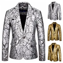 שינרון גברים טרייל מקרית Slim Fit אופנה חדשה הדפסת זהב שלב תלבושות זמר מארח מוזיקאי רקדנית נשף מסיבת נשף
