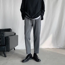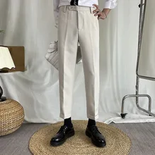 מכנסי חליפת גברים 2020 קיץ חדש בצבע אחיד דק מכנסיים של תשע דקות מכנסי רגל קטנות מזדמנים אופנה לבוש גברים צעירים