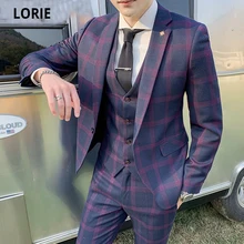 חליפת LORIE חליפת פנאי נוער לגברים של גברים 3 חלקים אירופיים ואמריקאים שמלות כלה לבנות Slim Fit לגברים