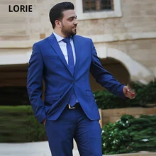 LORIE רויאל בלו 2 חלקים Slim Fit גברים חליפה רשמית סקיני כחול חתן חתן חתן טוקסידו חליפת חתונה לנשף מותאמת אישית סט חליפת גברים