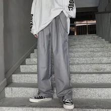 2020 אביב וסתיו נוער חדש פופולרי מכנסי מכוסות מכנסי אופנה מקרית צבע אחיד מכנסיים ישרים שחור / אפור S-XL