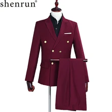 חליפות שןרון אדום יין אחיד כפול חזה Slim Fit טוקסידו חתונה מסיבת עסקים לנשף חליפה אופנה ומכנסיים מזדמנים
