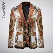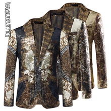 ווגולט בלייזר מזדמן גברים פרחוני זהב מודפס מעיל חורף Slim Fit מסיבת חתונת מעיל אמהות במה
