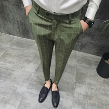 2020 הכי חדש חליפה שחורה גברים מכנסי מכנסי טרנינג משובצים מכנסי גברים אפורים גברים מכנסי Slim Fit מכנסי גרסה קוריאנית מותאמת אישית
