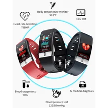 צמיד חכם צמיד E66 מדידת טמפרטורה קצב לב לחץ דם גשש כושר בריאות חמצן ECG PPG שעון חכם
