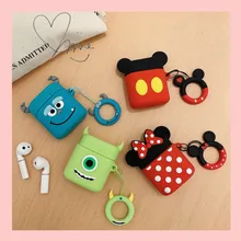 מארז ל- AirPods 2 מקרי אוזניות מצוירות חמודות עבור Apple Airpods 1 אביזרים להגן על הכיסוי עם רצועת טבעת אצבע פרי 3D