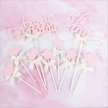 Cakelove חלבית כוכבים ורודים דגלים לב עוגת טופר מסיבת יום הולדת לקישוט הקאפקייקס לקישוט אביזרי עוגת קישוט