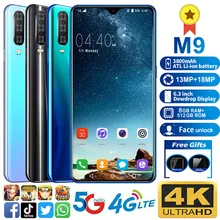 טלפון חכם M9 טלפון MTK6595 טלפונים סלולריים 5G LTE סמארטפון סמארטפון 8GB + 512GB מצלמה 13MP + 18MP. טלפון סלולרי 6.3