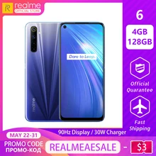 realme 6 גרסה גלובלית 4GB RAM 128GB ROM טלפון סלולרי 90Hz תצוגה Helio G90T 30W טעינת פלאש 4300mAh 64MP טלפון סלולרי מצלמה