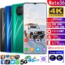 טלפון חכם Mate36 טלפונים סלולריים MTK6799 טלפון סלולרי Deca core 6.7 אינץ HD 5G טלפון סלולרי 8GB + 512GB טלפון 13MP + 24MP