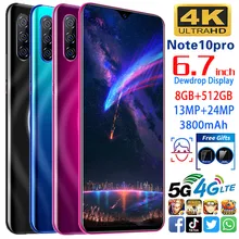 טלפונים סלולריים לא נעולים Note10pro Smartphone MTK6799 טלפון סלולרי 6.8 אינץ HD טלפון סלולרי 5G טלפון סלולרי 8GB + 512GB 13MP + 24MP