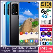 טלפונים חכמים P43pro טלפונים MTK6799 Deca core 6.7 אינץ סמארטפון סמארטפון 8GB + 512GB מצלמה 13MP + 24MP טלפון סלולרי 1440 * 3040