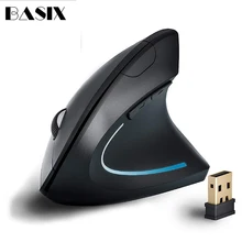 Basix עכבר אלחוטי 2.4 גיגה הרץ עכבר ארגונומי אנכי עכבר 1600 DPI 6 לחצנים עכבר משחקי אצבע USB לשולחן העבודה של המחשב הנייד