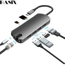 רכזת Basix סוג C USB-C Hdmi 4K מתאם USB C רכזת למתאם Gigabit Ethernet Rj45 Lan עבור Mac Book Pro Thunderbolt 3 רכזת USB-C