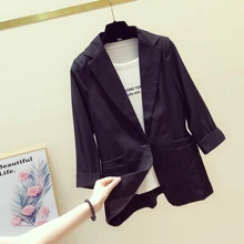 2020 סתיו וחורף חדש שרוול שלושה רבעים ארוך מוצק ללא פרחים מעוטרים בלייזרים מזדמנים פלוס בגודל L-3XL