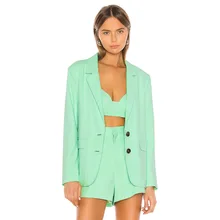 מכנסי בלייזר חליפות סטים של בגדי נשים מעיל ומעילי קצרים אלגנטיים קצרים עם שני חלקים חליפות משרד מזדמנים ג'ק ירוק בהיר