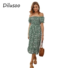 Dilusoo נשים פרחוניות שמלה קפלים סלאש צוואר נקבה 2020 שמלת חג הקיץ באורך קרסול שמלות Vestidos בוהמיות