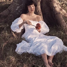 Gedivoen מסלול האופנה קיץ ארוך שמלה נשים סלאש צוואר סטרפלס חולצות אלגנטיות בסגנון שמלות ראפלס שמלות המפלגה