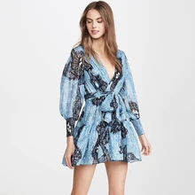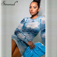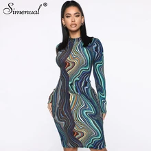 רשת סקסית חמה סימנית דרך שמלות מיני נשים מודפסות שרוול ארוך מסיבת מועדון Bodycon סקיני אופנה עניבת צבע