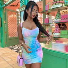 Simenual Tie Dye חם נשים סקסיות Bodycon שמלות רצועה 2020 מסיבת האופנה הקיץ Clubwear שמלות מיני ללא שרוולים ללא שרוולים
