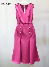 שמלות האופנה הכי חדשות 2020 קיץ בסגנון נשים צווארון V כפתור בלוק צבע דקו ללא שרוולים Midi מסיבת בת ים שמלת רוז אדום שחור