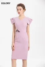 שמלת 3XL Vestidos 2020 קוקטייל מסיבת קיץ נשים עם צווארון עם שרוולים קצרים ואגלי עבודת יד Bodycon Midi שמלה סגולה