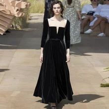 Gedivoen Spring High Street V צוואר שמלת נשים קטיפה שחורה מוצקה קו שמלת קו מסלול אופנה אלגנטי שמלות Midi פשוט