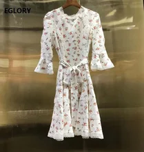 Gedivoen מסלול האופנה האביב שמלה קצרה נשים צווארון V תחרת קו שמלת בגדי רחוב זוהרים מיני שמלות Vestidos