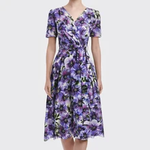 Gedivoen שמלות מסלול האופנה קיץ נשים V צוואר פרחוני הדפס קו שמלת מסיבת אלגנטית משי משי שמלות 2020