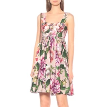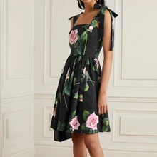 Gedivoen קיץ אלגנטי המפלגה שמלה קצרה נשים רצועת ספגטי הדפס פרחוני שמלת קו מעצבי אופנה שמלות מיני כותנה