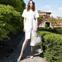 Gedivoen מסיבה אלגנטית שמלת קיץ לבנה מוצקה נשים חגורות פיצול ישר שמלת מעצבת אופנה משרד ליידי באורך הברך שמלה