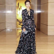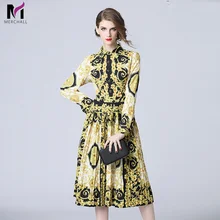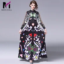 מרקאל אביב סתיו שמלת שרוול ארוך נשים באיכות גבוהה רטרו פרחוני מסלול מסלול מקסי שמלת שמלת וינטג 'ארוכה
