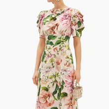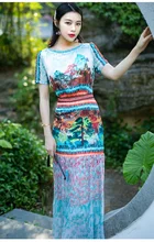 שמלה סינית באיכות מעולה 2020 קיץ נשים וינטג 'הדפס ציור בציר שרוול קצר קרסול ארוך שמלת קפלים גבירותיי יוקרה