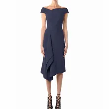 Gedivoen אופנה מוצקה ליידי משרד שמלות נשים מעל כתף טלאים ראפלס שמלות מעצבי קיץ לא סימטריים