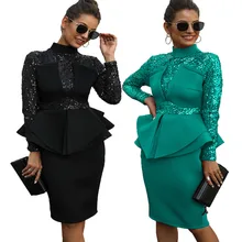 בתוספת גודל Vestido 2019 שמלת נצנצים לפרוע Sukienka נשים שמלות מסיבת שרוול ארוכות Vestidos Robe Longue Femme Elbise