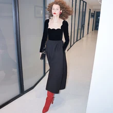 צווארון כיכר Gedivoen שמלת מסיבה אלגנטית שמלת טלאים לנשים קטיפה שמלות קו מסלול אופנה וינטג 'שמלות מידי