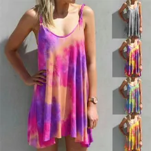 נשים חדשות שמלות הדפס צבעוניות 3D קיץ 2020 גדלים גדולים רצועה סקסית מיני אפוד שמלת חוף שמלה מזדמנים רופפת בתוספת גודל 4XL 5XL