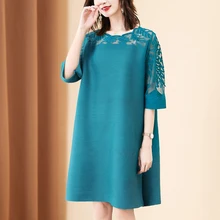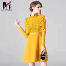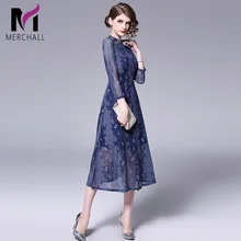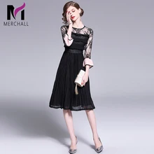 Merchall מעצבי מסלול תחרה שמלת אביב סתיו נשים חצי שרוול אלגנטי חלול שמלות מסיבת OL