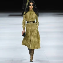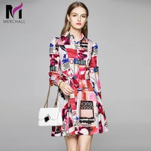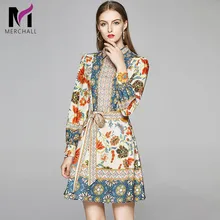 מרקאל נשים חדשות סתיו שרוול ארוך שמלה באיכות גבוהה רטרו מודפס שמלת מסלול שמלות מסלול וינטג 'באורך הברך