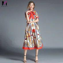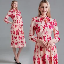 מרקסל מעצבי האופנה מסלול מקסי שמלת 2019 נשים חדשות שרוול ארוך שרוול ארוך Bowknot הדפסת שמלות חולצה ארוכות מקרית