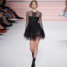 מסלול מסלול איכותי של אביב 2019 אביב קיץ אופנה חדשה למסיבת נשים משרד חלול שמלת תחרה וינטג 'עם שרוולים ארוכים