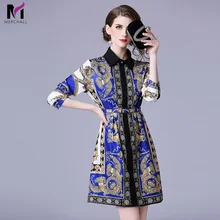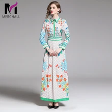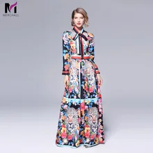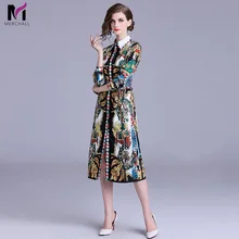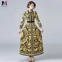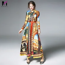 מרקאל הדפס הבארוק וינטג ארוך שמלה אלגנטית נשים 2018 שמלות סתיו חדשות שמלות שרוול ארוך חולצה צווארון שמלות מקסי מסלול