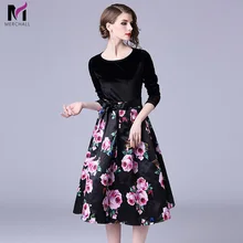 מרקאל נשים ארוכות מסיבת מסלול מסלול המפלגה שמלת קטיפה פרחונית Robe Femme Hiver 2018 חורף Jurken Dames שרוולים ארוכים מקסי שמלות