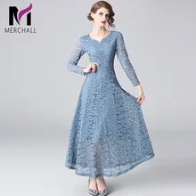 Merchall שמלות גבירותיי הגעה חדשות תחרה ארוכה 2019 שרוול מלא הולו מתוך תחרת שמלת מסיבת מקסי מעצבי אופנה שמלת מסלול