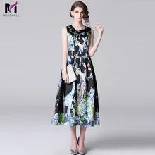 מסלול מסלול אביב חדש של קיץ האופנה ג'ירף מיני שמלה מיני שמלה ללא שרוולים פרחוניים מפלגת ג'ונגל שמלת קו