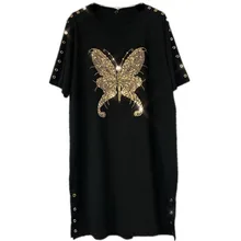 QING MO נשים קיץ שמלה 2020 שמלת הדפסת ארנב בעלי החיים שמלת דפוס ריינסטון נשים שרוול קצר שמלה שחורה פרפר כובע QF664